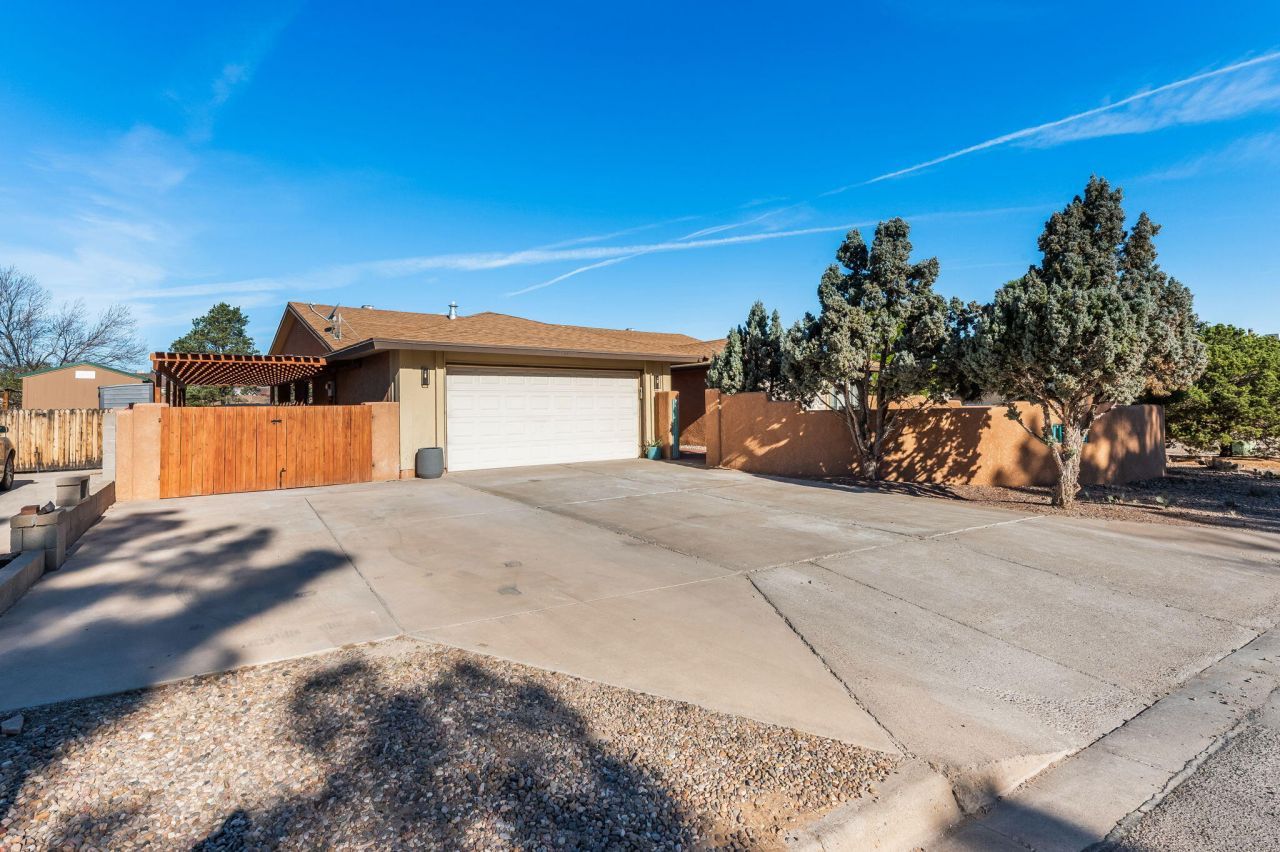 Over $100,000 in custom upgrades and high end finishes elevate this NW Albuquerque 3 bed, 2 bath home! Situated on a large corner lot backing to trails. Thoughtfully remodeled with Shaw engineered hardwood floors, new tile, and designer LED lighting throughout. The custom kitchen features shaker cabinets with soft-close and pull-out shelving, quartz countertops, Frigidaire stainless appliances, and special-order tile backsplashes. Bathrooms shine with new tile, soaking tub, floating vanities, LED mirrors, and quartz tops. Enjoy custom wood feature walls, eco-friendly Clare paint, built-in fireplace mantel with outlets, brick courtyard, expansive deck, flagstone patio, firepit, and infrared sauna. So much to list, checkout the features in the docs!