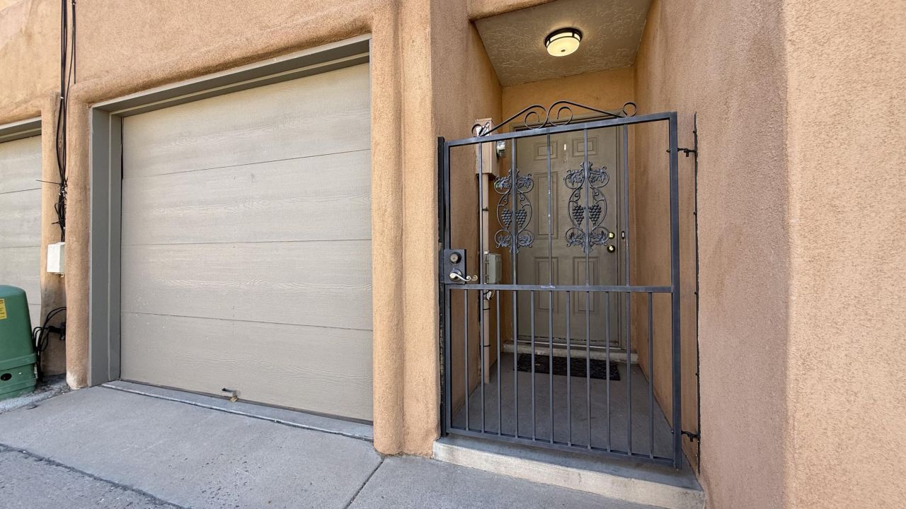 Fabulous location! This Pueblo style townhouse complex is perfectly situated near Old Town, the Sawmill District, museums and just minutes to Downtown & walking/biking trails. Easy access to I-40. Freshly painted inside with new skylights, new water heater, a 1 yr. old electric range, new blinds & parapets have been professionally resealed & restuccoed. The living area is light & bright with high ceilings & a gas fireplace & dining area. Primary bedroom includes a walk-in closet. Both bedrooms have their own bath. This home is ready for your personal touches. Easy care, no landscape to worry about. Whether you are looking for a cozy personal home, a lock & leave situation or a rental for investment, this is it! You won't want to miss it! Note: Short Term Rentals not allowed.