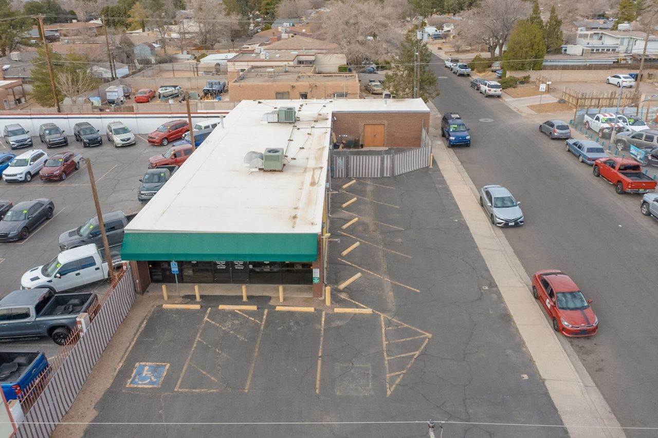 Establish your business in a high-traffic, high-visibility location in a great location in the Northeast Heights! This impressive freestanding commercial property, located on a prime corner lot on Lomas spans 3,500 square feet. The solid brick building is situated directly across from the Fairgrounds with exceptional monument signage and a ''gajillion'' vehicles per day, seriously, over 25,000 passing by daily. The building features a flexible layout with multiple offices and workstations, expansive storage and warehouse, two restrooms and a large, fenced outdoor area. With mixed-use zoning, it allows on-site living, offering security of your property from the comfort of your home. It has a newer roof, front awning, updated storefront windows and parking up to 10 spaces.