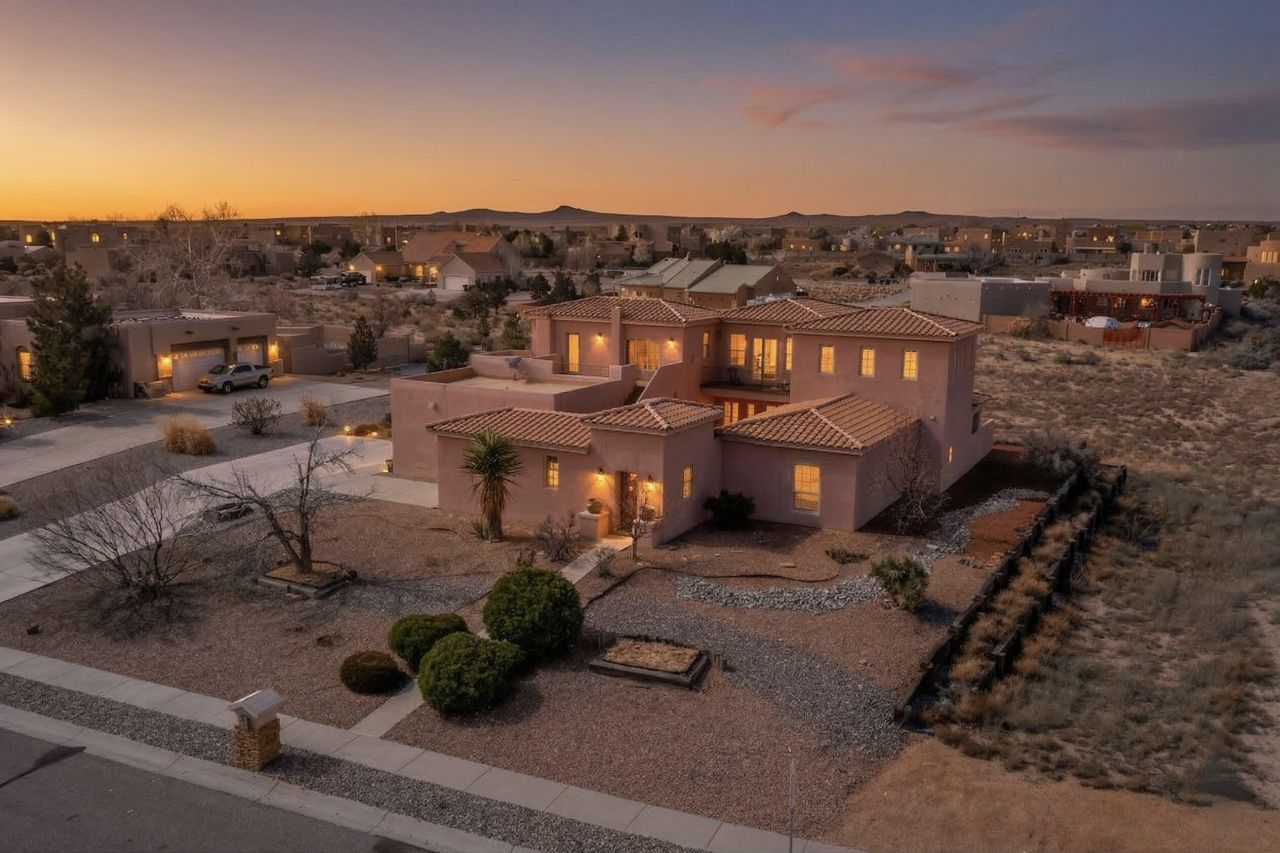 Elegant custom two-story home on 1.03 acres in desirable Chamisa Ridge! This beautifully designed residence features three fireplaces and high-end finishes throughout. A private courtyard welcomes you--perfect for outdoor dining or relaxing with friends. The chef's kitchen offers a gas cooktop, large island, and butler's pantry. The spacious primary suite includes an updated bathroom with jetted tub, cozy gas log fireplace, and private deck with stunning Sandia Mountain views. . A perfect blend of elegance, comfort, in a highly sought-after Albuquerque location.